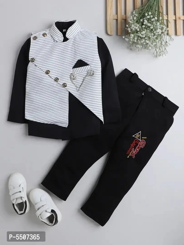 लड़कों के लिए कॉटन शर्ट, ट्राउजर और वेस्ट कोट सेट